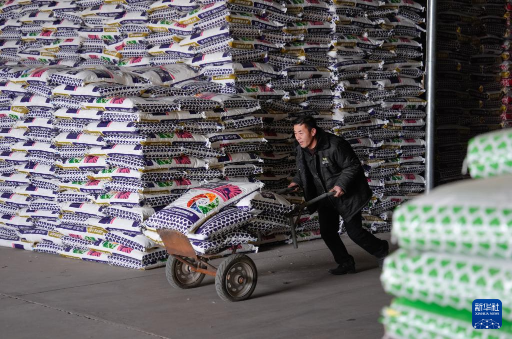 工作人員在寧夏同心縣石獅鎮一家種子經銷點裝貨(2月20日攝)。