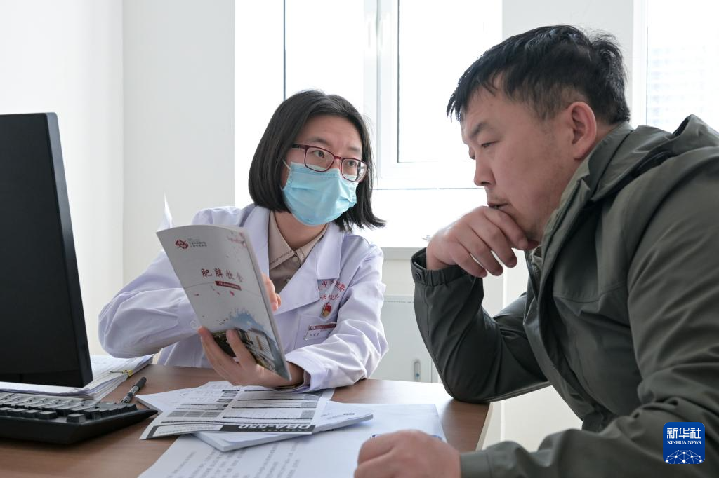 3月21日,寧夏中醫醫院暨中醫研究院營養科副主任劉慧芳(左)結合“肥胖飲食”手冊,為患者制定減重飲食計劃。