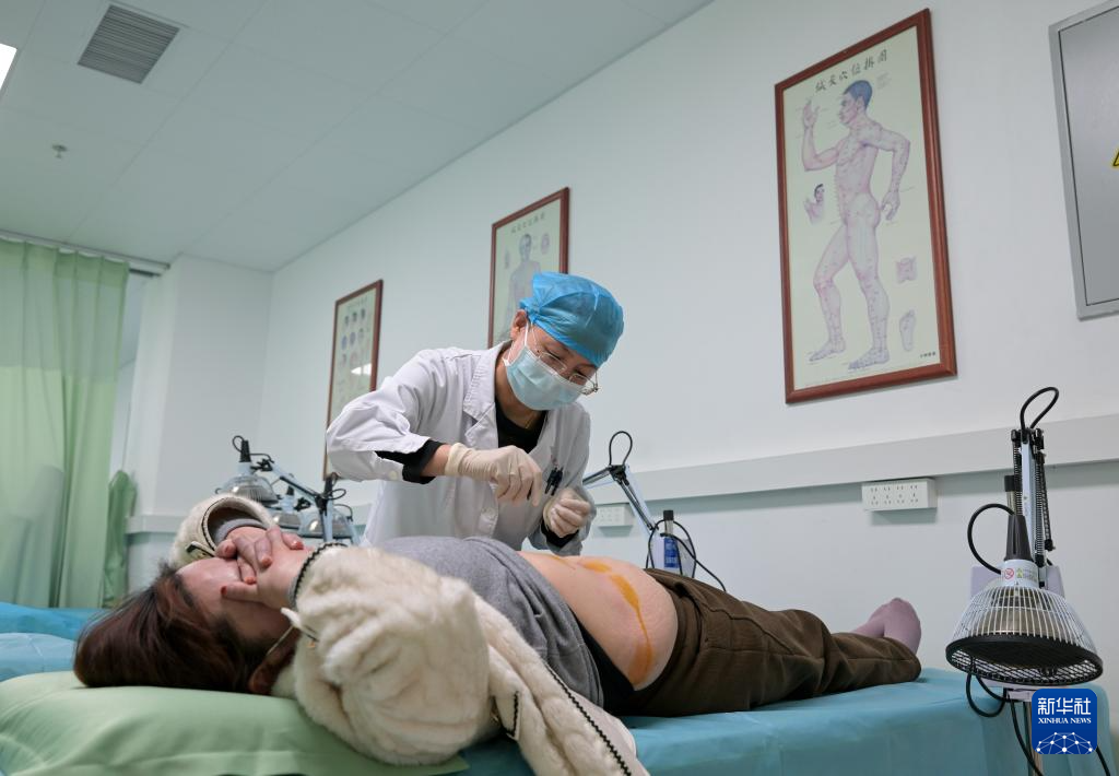 3月21日,寧夏中醫醫院暨中醫研究院護士在為患者進行扶陽罐治療。