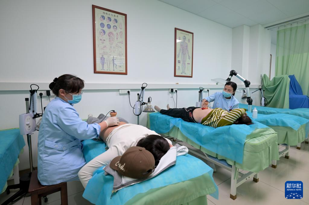 營養科、治未病中心、針灸科等多個科室醫師組成“減重營”專家團隊,根據患者人體成分檢測結果制定減重方案,在此基礎上結合個人情況進行中藥內服、穴位貼敷、穴位埋線、扶陽罐等中醫特色療法?;颊呷霠I后按照詳細的飲食、運動計劃,打卡交流,以一個月為周期見證身體蛻變、鞏固減重成果。新華社記者 馮開華 攝