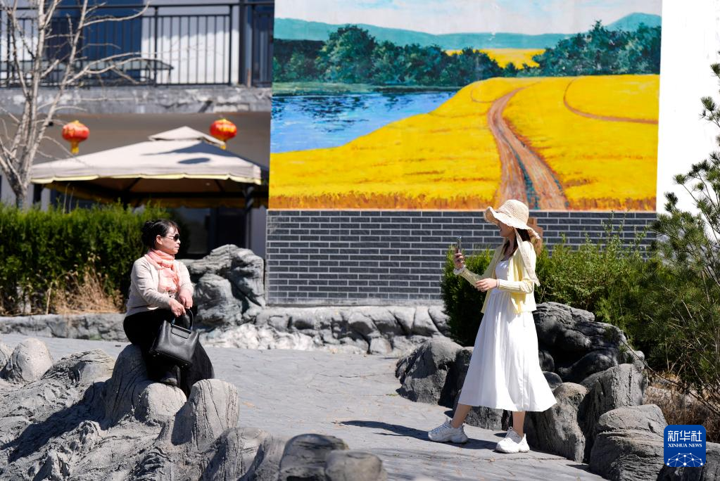 4月9日,游客在石嘴山市大武口區龍泉村游玩。