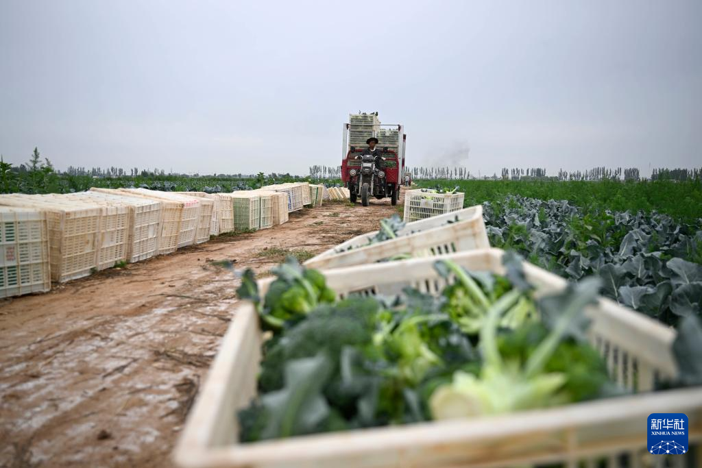 6月20日,工人在位于銀川市賀蘭縣立崗鎮的供港蔬菜種植基地運輸西蘭花。