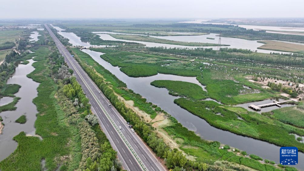 夏日,黃河寧夏段灘涂濕地綠意盎然,生機勃發,盡顯生態之美。新華社記者 王鵬 攝