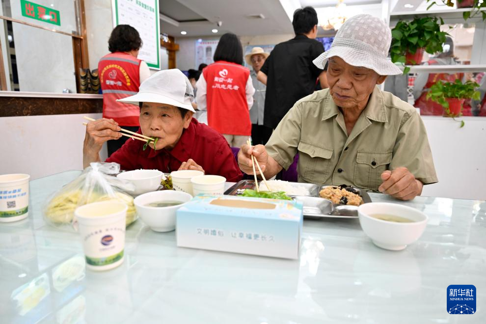 6月26日,居民在寧夏銀川市興慶區“湖映泰平”共享社區食堂就餐。