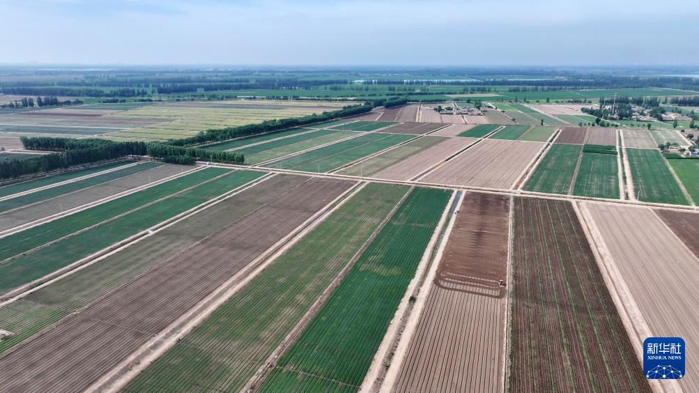 這是7月1日拍攝的青銅峽市邵崗鎮益豐農業供港蔬菜基地(無人機照片)。