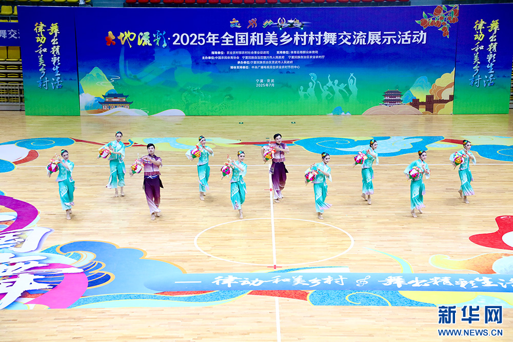 7月5日至6日,大地流彩·2025年全國和美鄉村村舞交流展示活動在寧夏銀川市靈武市舉行。來自全國28個省、自治區、直轄市的600多名村舞愛好者齊聚靈武市梧桐樹鄉楊洪橋村,共同舞出新時代農民風采和鄉村振興活力。新華網 張潔龍 攝
