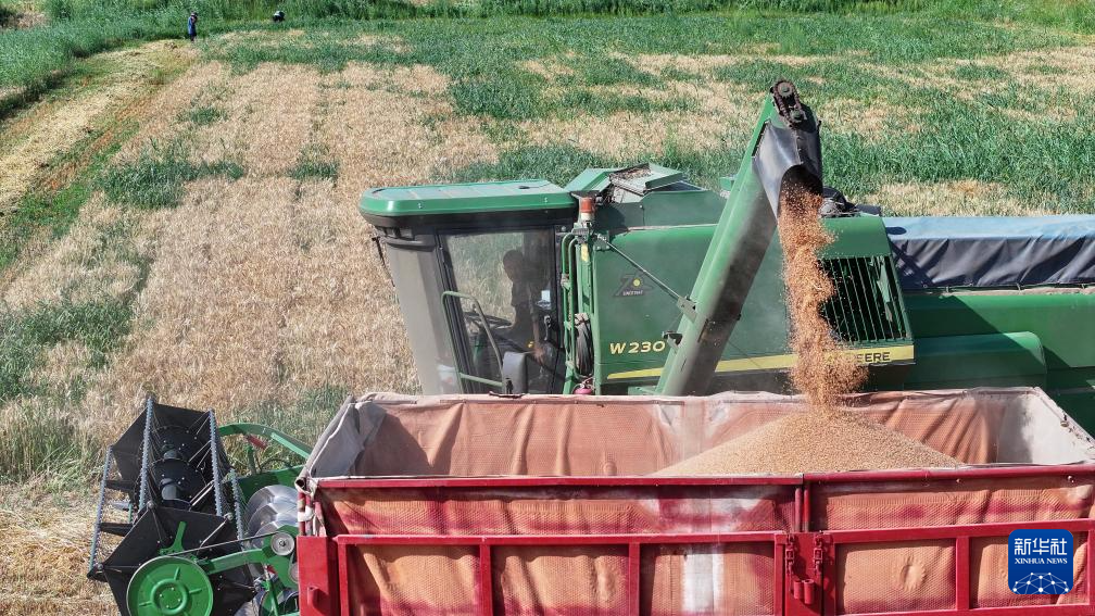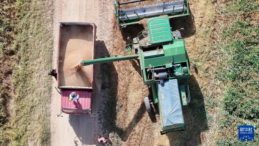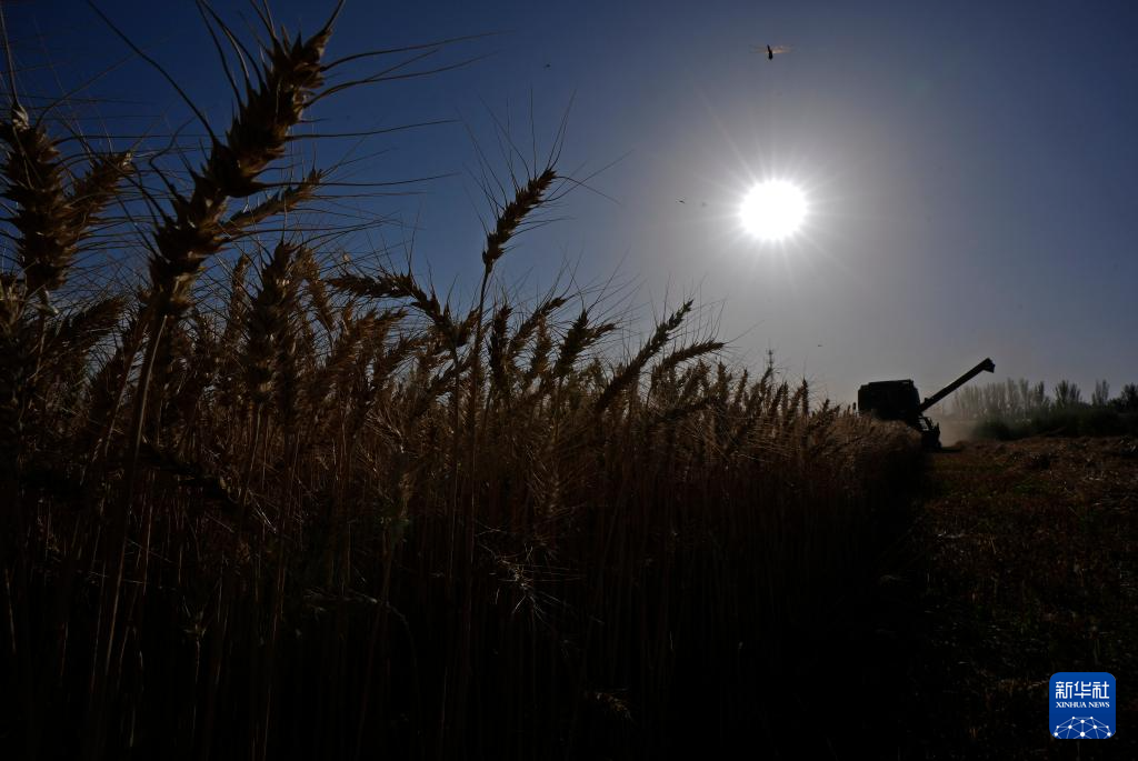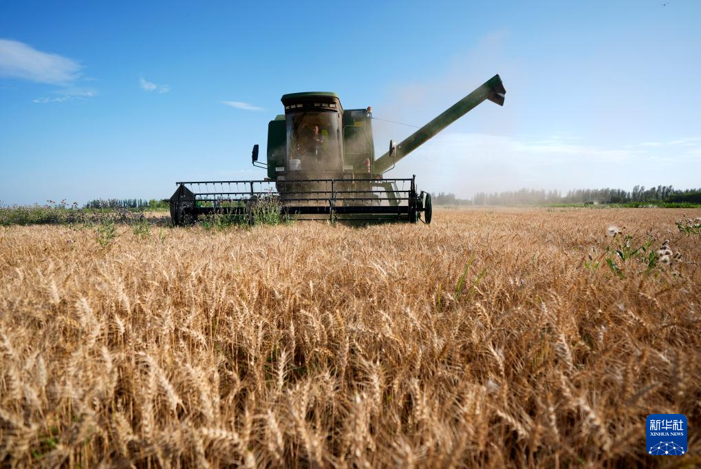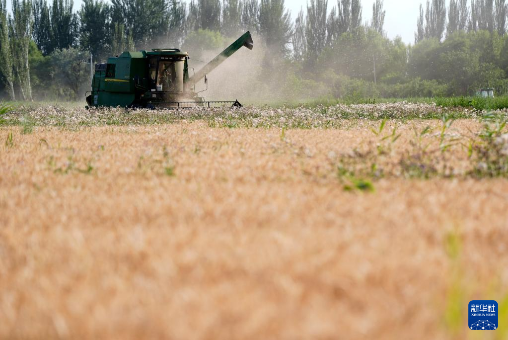 近日,寧夏銀川市引黃灌區迎來小麥收獲季,當地農戶搶抓晴好有利天氣,開展夏收工作。新華社記者 王鵬 攝