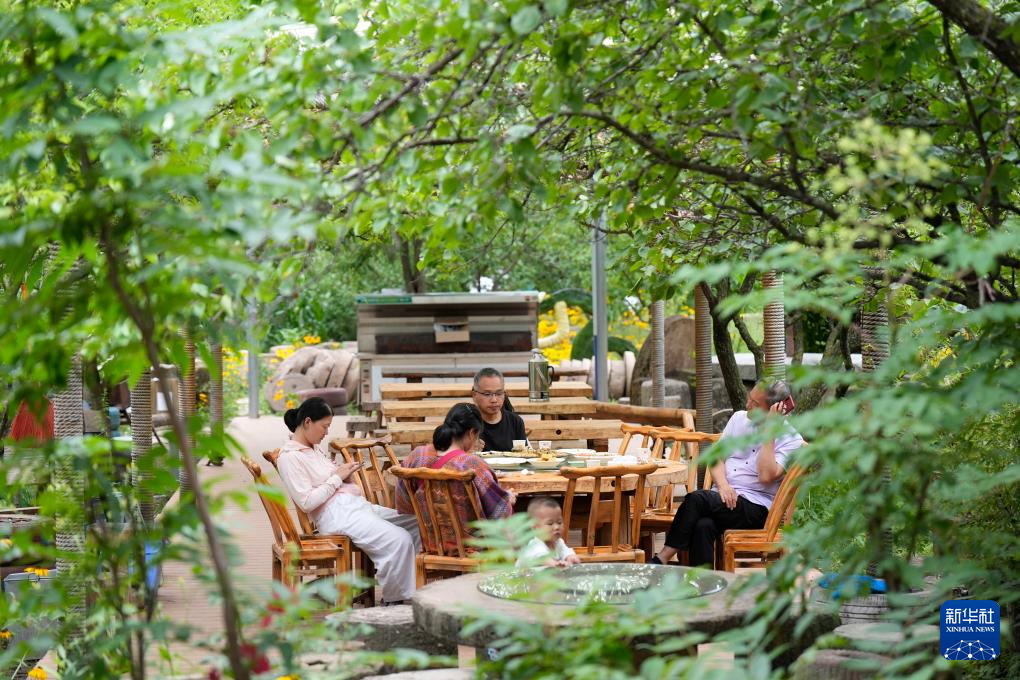 7月19日,游客在寧夏固原市涇源縣涇河源鎮冶家村民宿旅游區休閑、游玩。