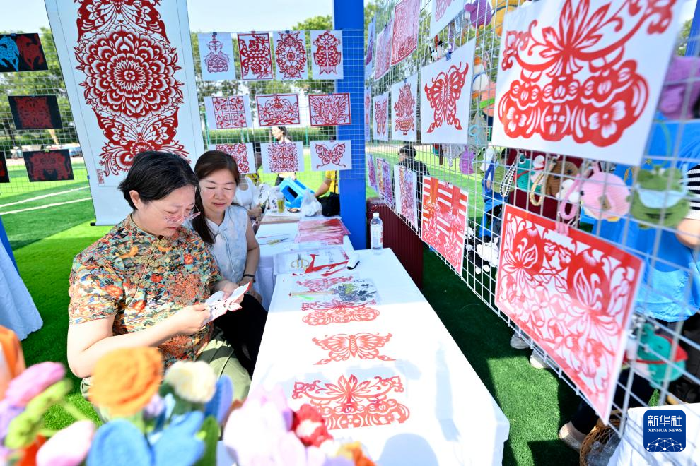 7月23日,非遺傳承人在活動現場創作剪紙作品。