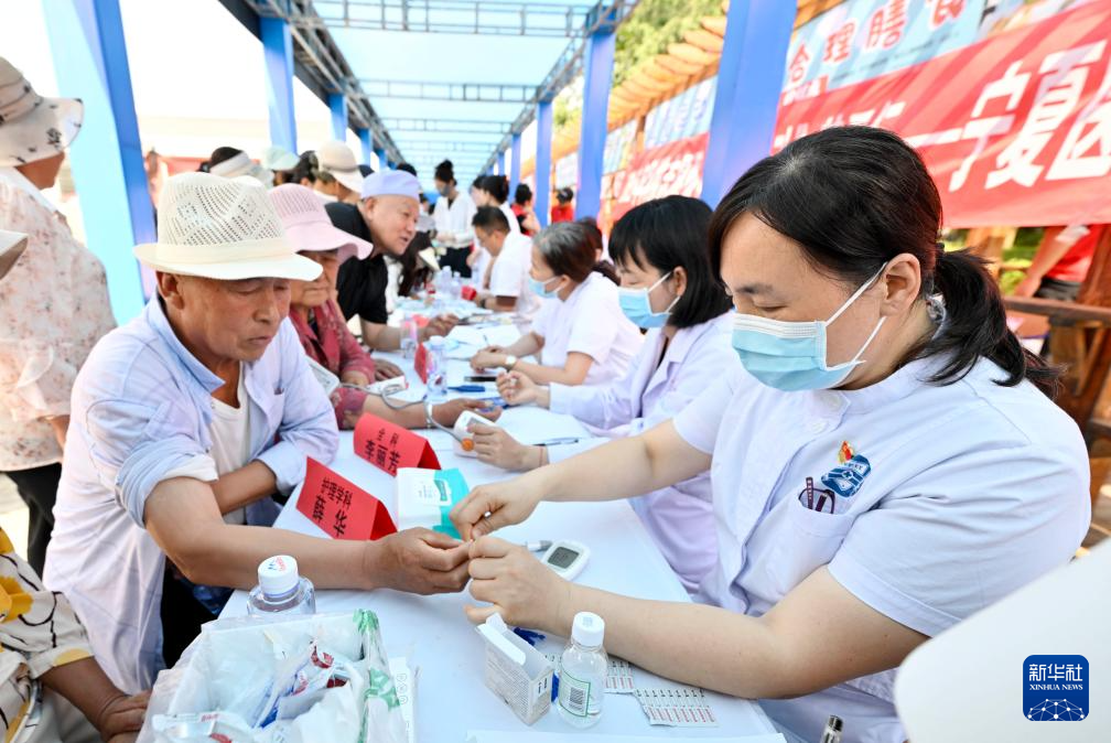 7月23日,衛生部門志愿者在活動現場為居民提供診療服務。