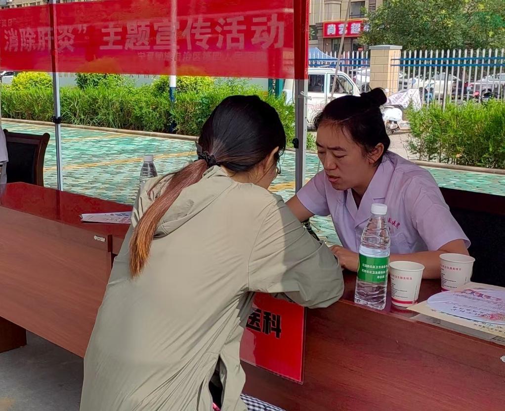 活動現場邀請了自治區疾控中心、自治區人民醫院、賀蘭縣衛健系統等多名醫師開展診療服務,為篩查異常者、肝病患者家屬及高危人群提供專業指導,共300余人次接受健康咨詢?;顒犹貏e設置免費肝炎篩查點,通過快速檢測篩查結果異常人群,共有80多名居民參與檢測。對篩查異常者,醫師團隊引導其前往醫療機構進一步檢查,并提供個性化診療方案。