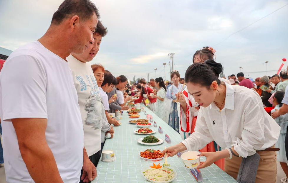 平羅十三香美食甄選活動更是亮點紛呈,13個鄉鎮的特色美食技藝,爭相亮相,呈現出原汁原味的“一鎮一味,一味一故事”的平羅美食文化。這場爭霸賽不僅是美食的比拼,更是文化的傳承與交流?!鞍偃碎L桌宴”將匯聚各方食客,大家圍坐在一起,共享美食,感受團結與歡樂的氛圍。市民蔣欣笑著說:“太喜歡這種氛圍了,大家聚在一起,品嘗各地美食,濃濃的煙火氣?!?/p>