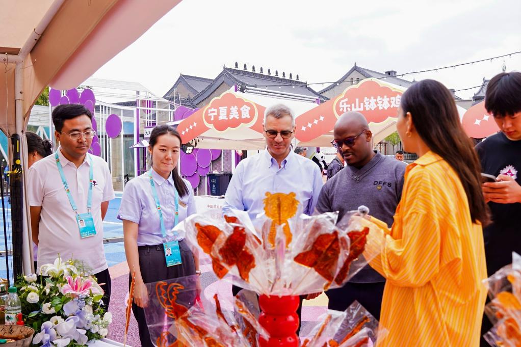作為本次會議的重要配套活動,絲路市集于27日下午在銀川文化城·鳳凰幻城拉開帷幕,匯集了埃及、沙特阿拉伯、伊朗、尼泊爾等共建“一帶一路”國家的特色美食與手工藝品,以及山西、河南、四川、甘肅、青海等省市和寧夏的非遺文創和旅游商品,將持續至8月30日。