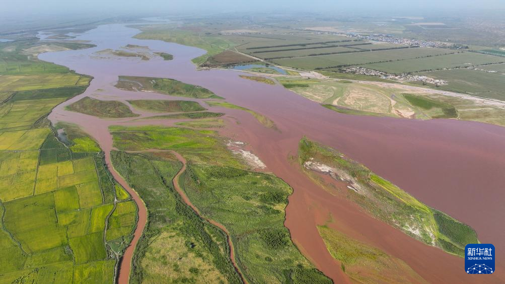 這是9月6日在寧夏石嘴山市平羅縣境內拍攝的黃河灘涂(無人機照片)。