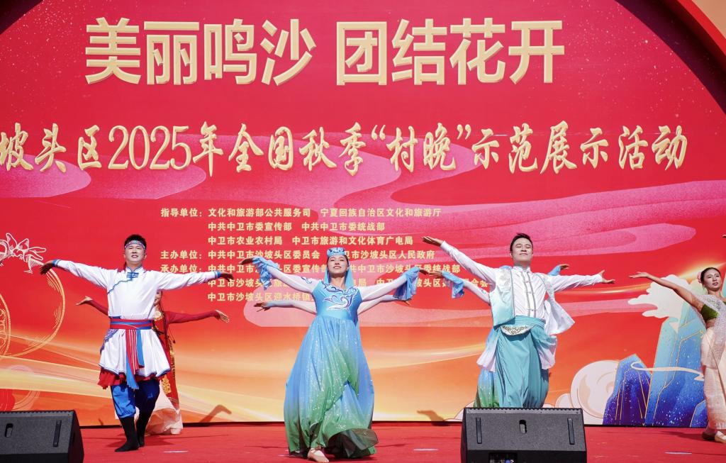 9月23日,“美麗鳴沙 團結花開”沙坡頭區2025年全國秋季“村晚”示范展示活動在寧夏中衛市沙坡頭區迎水橋鎮鳴沙村廣場舉行。此次活動以鑄牢中華民族共同體意識為主線,融合“村晚+豐收節+民族團結”多元主題,通過歌舞、小品、快板等多元藝術形式,精彩呈現了沙坡頭區民族團結、產業興旺、生態優美、文化繁榮的生動畫面。