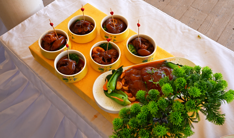 競賽中,選手們迅速進入狀態,以飽滿的熱情全身心投入比賽。在中式烹調區域,選手們手持刀具,穩而準地在砧板上切配食材,動作嫻熟流暢,各類食材被切成大小均勻、形狀規整的塊、絲、片;中式面點區,選手們有條不紊地操作著,揉面、搟皮、包餡、成型,每一個步驟都精準到位;羊肉烘烤區,選手們熟練地翻動著烤架上的羊肉,根據火候和肉質的變化適時調整調料和烤制時間。餐廳服務區域,選手們著裝整齊,面帶微笑,動作規范,從迎賓、引座、遞菜單到上菜、斟酒、撤盤,每一個環節都處理得恰到好處,展現出良好的專業素養和服務水平。整個競賽過程中,選手們各展所長,充分展現了餐飲行業職工精湛的技能和良好的職業風采。