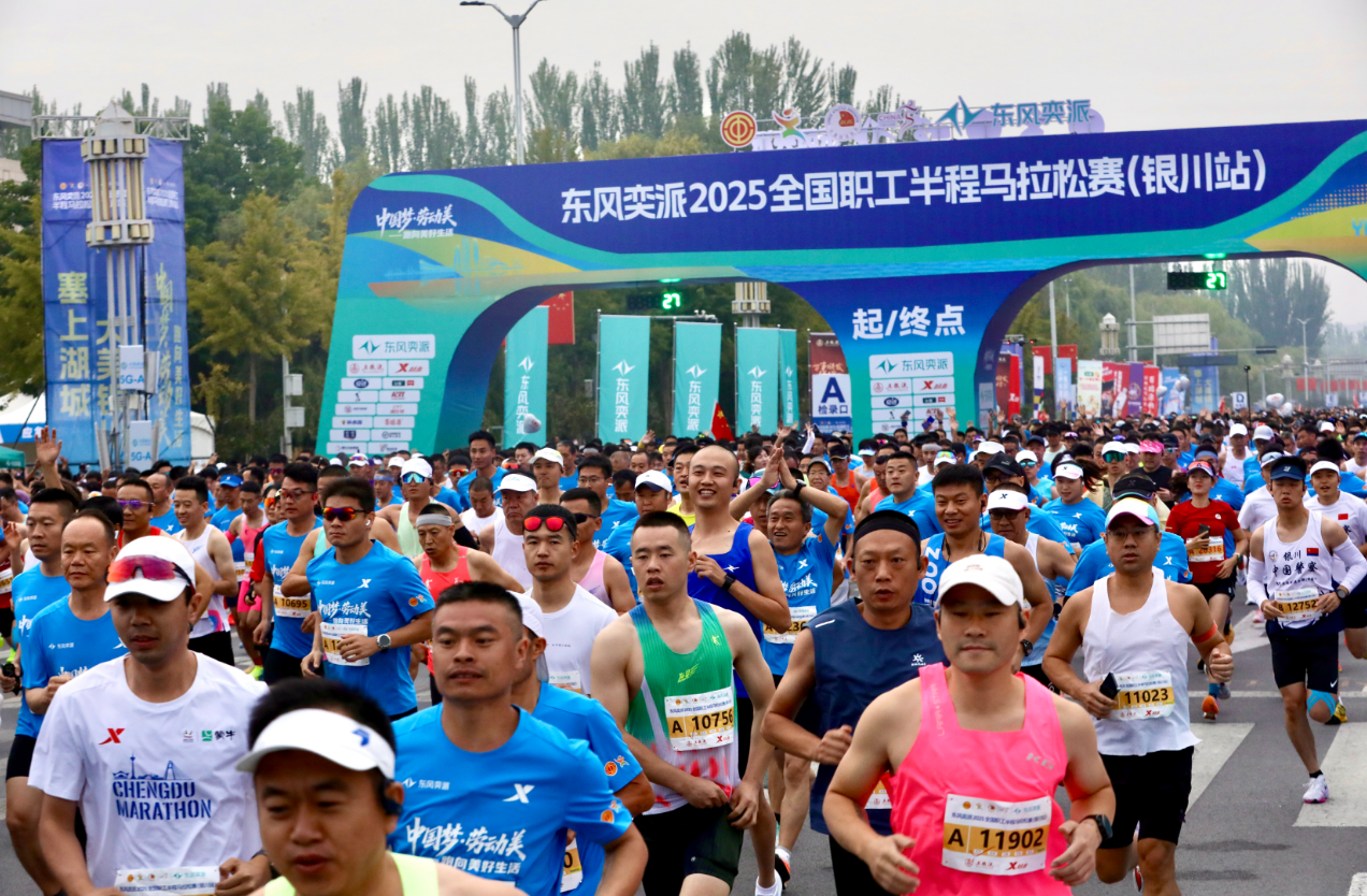 據悉,2025全國職工半程馬拉松賽是全國首個成功通過中國田徑協會A1類賽事認證的職工路跑賽事,首次落戶銀川。賽事設半程馬拉松、特色方陣領先跑、健康跑三個組別,其中,特色方陣領先跑項目由勞模工匠、百年工運、產業建功和新就業形態勞動者四個方陣組成,大家脫下工裝換賽服,用激情奔跑的身影,繪就了一幅動感活力的秋日畫卷,展現了新時代職工昂揚向上的精神風貌。