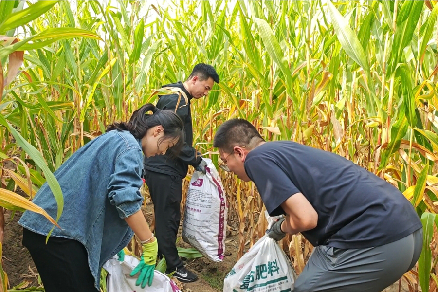 “長期對著電腦屏幕,頸椎腰椎都出了問題,今天揮鋤頭、掰玉米,渾身的筋骨都舒展開了?!睂W員宋春陽一邊擦汗一邊展示自己剛學會的掰玉米技巧。在與社區居民黨員志愿者的協作配合中,她不僅掌握了辨別玉米成熟度的訣竅,更了解了農場從荒地到良田的變遷。