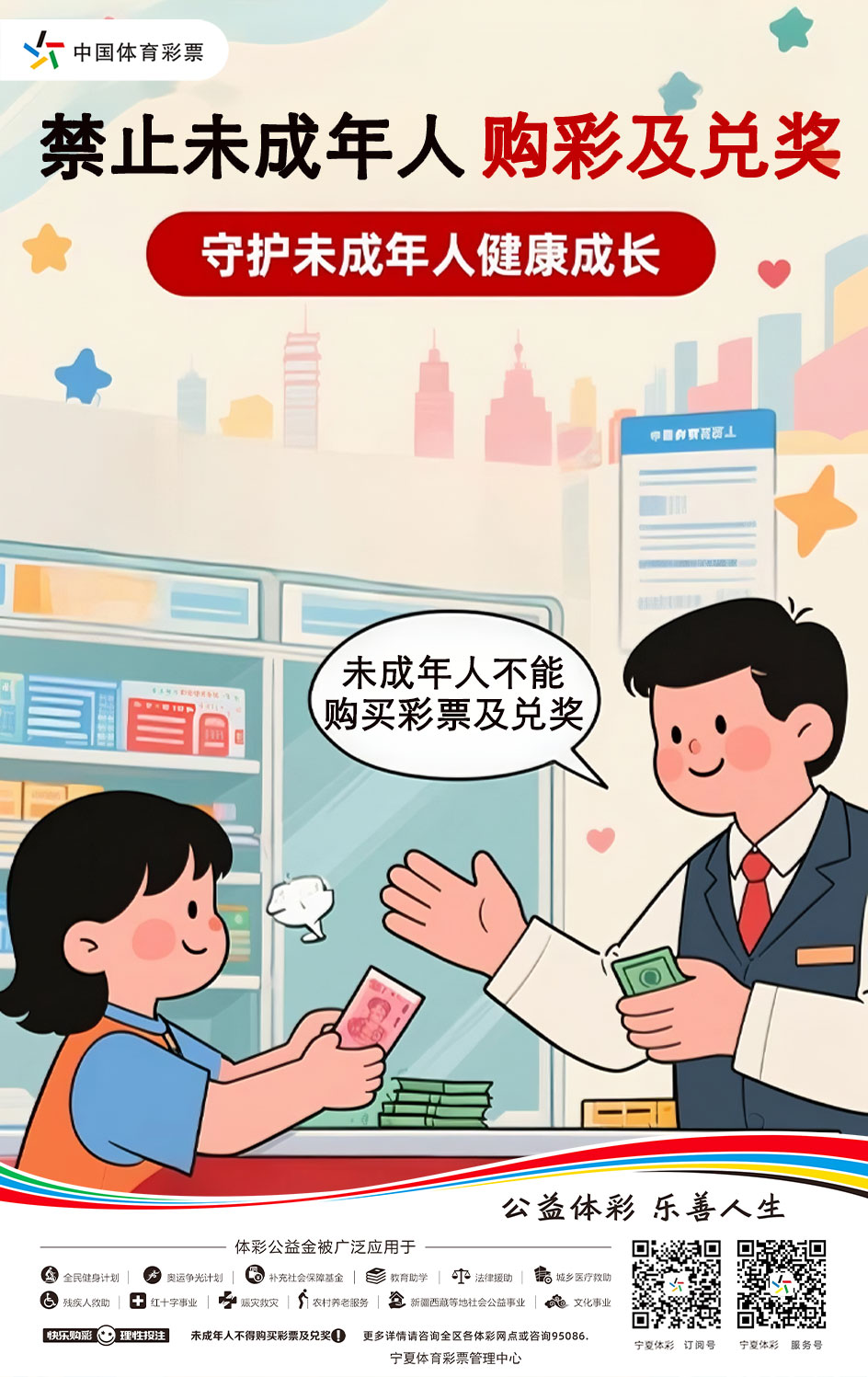 中國體育彩票是為國家體育事業和社會公益事業籌集資金的一種方式,其健康發展的前提是合規與責任,將《彩票管理條例》第十八條落到實處,保護未成年人,就是保護我們的未來。讓每一張中國體育彩票都在陽光與責任中運行,為體育事業和公益事業添磚加瓦。(完)