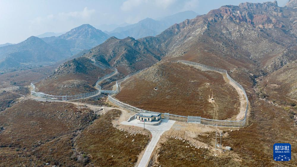 這是10月24日拍攝的位于寧夏賀蘭山國家級自然保護區內的寧夏賀蘭山雪豹保護研究基地,有2只雪豹在這里進行適應性訓練(無人機照片)。