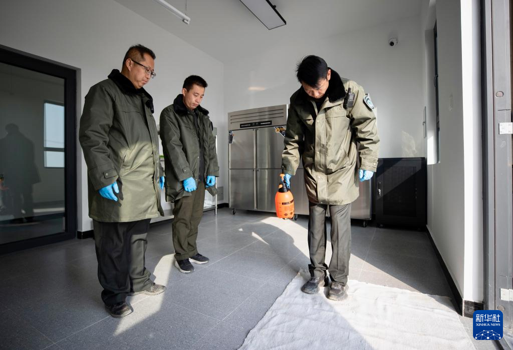 10月24日,在位于寧夏賀蘭山國家級自然保護區內的寧夏賀蘭山雪豹保護研究基地,工作人員在進行消毒作業。