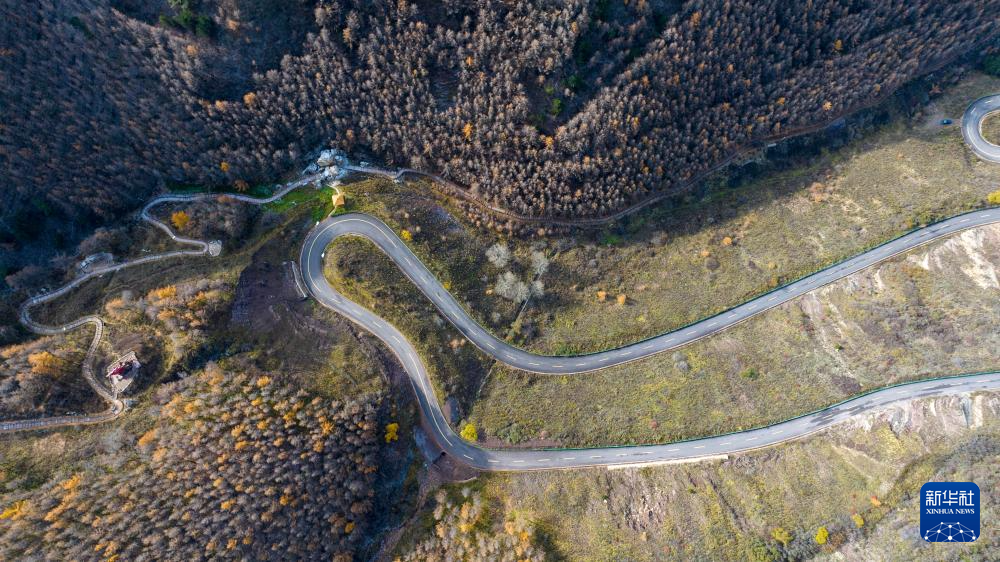 10月26日在位于寧夏固原市隆德縣的寧夏六盤山紅軍長征景區拍攝的秋景(無人機照片)。