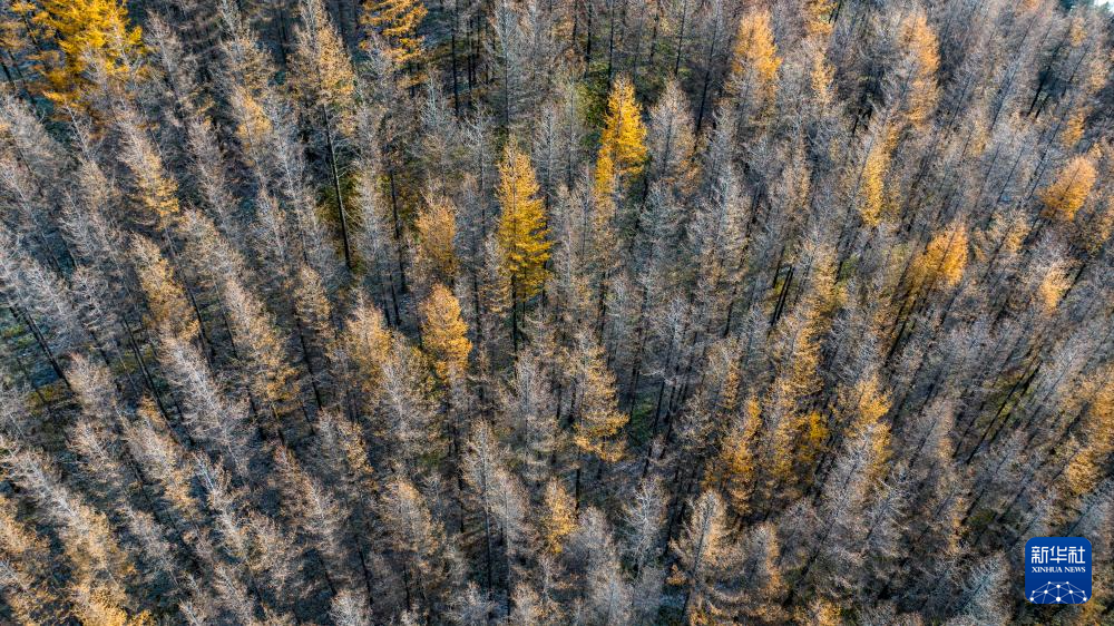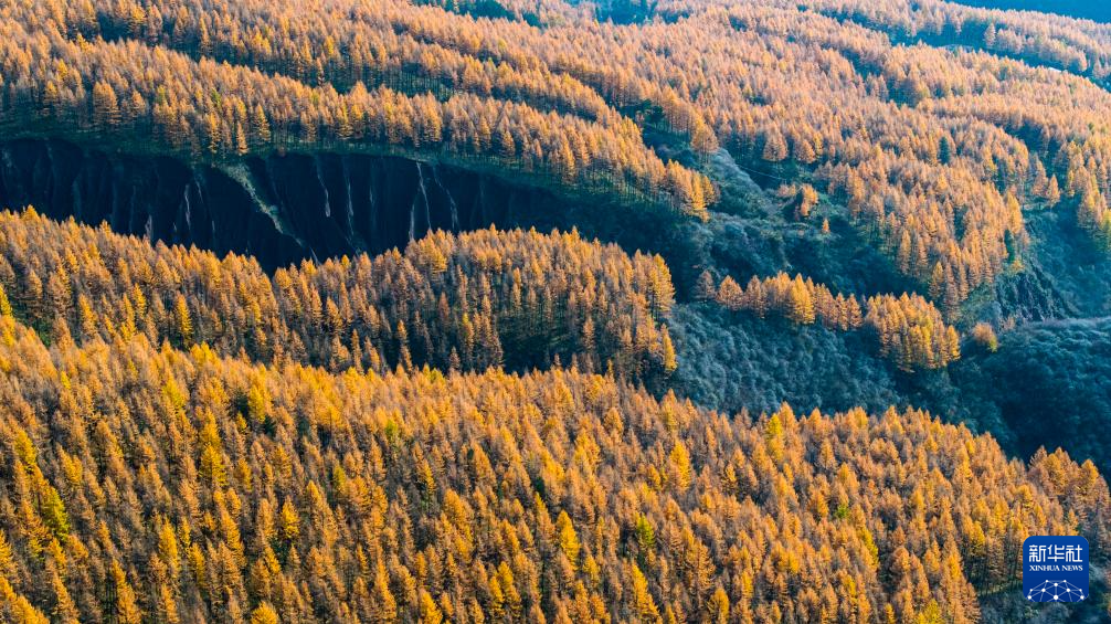 10月27日在寧夏固原市隆德縣六盤山北聯池拍攝的秋景(無人機照片)。