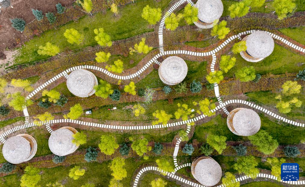 隆德縣城關鎮楊家店村星空民宿旅游區(無人機照片,10月26日攝)。