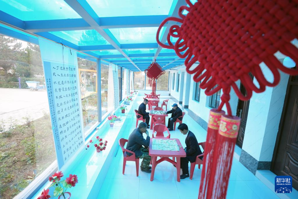 隆德縣鳳嶺鄉李士村村民在活動室下棋(10月26日攝)。