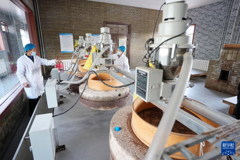 隆德縣鳳嶺鄉李士村村民在非遺工坊用傳統工藝釀造食醋(10月26日攝)。